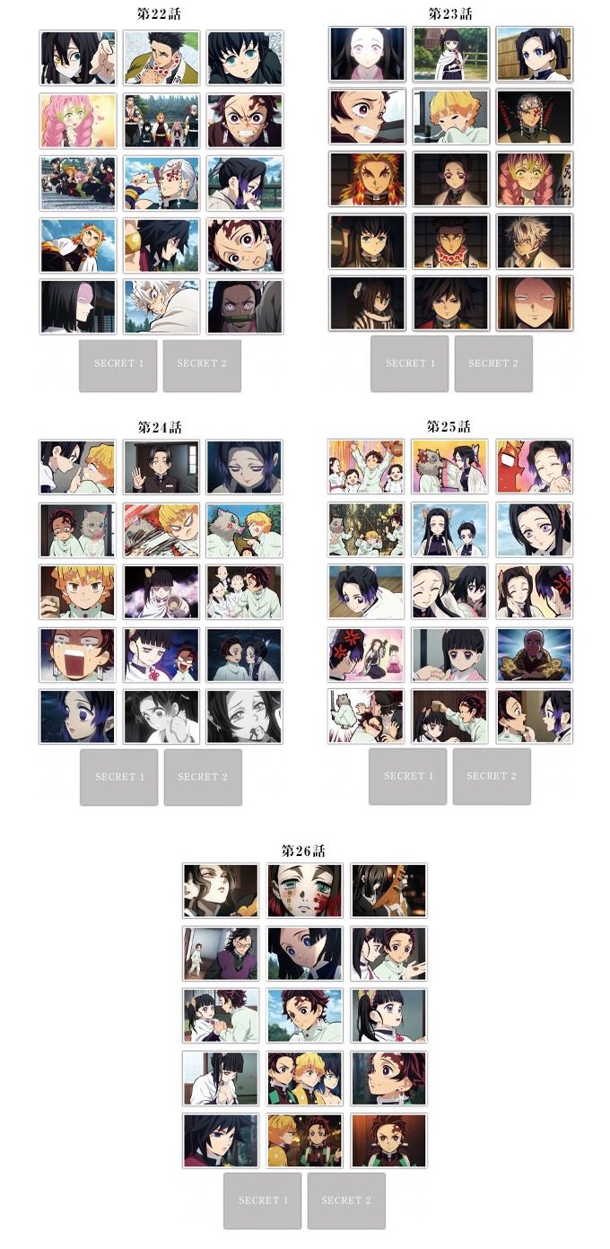 Ufotable Cafe Osaka Ufotablecafe マチ アソビカフェ Osaka 本日発売の 鬼滅の刃 場面写ブロマイドくじ 22 26話は全て品切れとなりました 現在当店で発売中の 鬼滅の刃 場面写ブロマイドくじは以下の通りです 1 10話 Ed T Co
